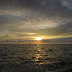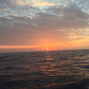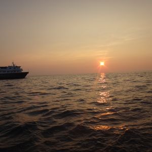 意外にも早いスピードの中、進んで行くと、大きな太陽が海に沈むところ!ドリンクを飲みながら、徐々に海に近付いていく太陽、船の上でじっくり日の入を見て、写真を撮ったりすることができました。
