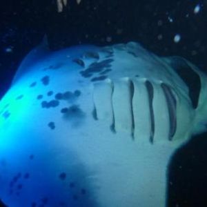 2〜3mのマンタが10枚以上光に集まってくれて、目の前を優雅に泳ぐ姿は幻想的で、神秘的で、夢の中にいるようでした。