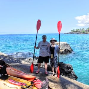 今回はハワイ島でのシュノーケリングも予定していたので、装備も揃えて伺いました。カヤックは、青い海と青い空に包まれるような感覚を、今年は昨年以上に体感できました。ほんとに楽しかったです。