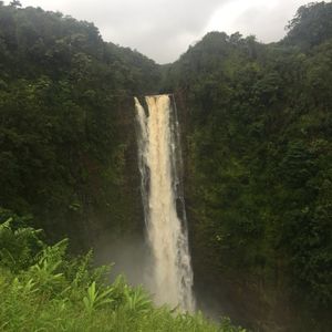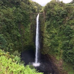 最初に行ったのは有名なマラサダの店。揚げたては表面がさくっと、中はふわふわで、表面の砂糖の甘さが程よく口に中に広がりました。次はワイピオ渓谷へ。海にせり出すような断崖の景色は壮大でした。ホノカアの町は、映画のロケ地になったところで、リクエストで急遽下車しての見学。レトロな街並みを背景に写真を撮りました。そのあとアカカ滝を見学。熱帯植物の茂る中を進むと見えてきました。勢いよく落ちる滝に、太陽の光が当たって綺麗な虹が表れて、素敵でした。ヒロの町を散策し、カメハメハ大王の銅像前で記念撮影をしたり、ロコモコを食べたりしました。日本人好みのグレービーソースのロコモコでした。定番のビッグアイランドキャンディでは、お土産にクッキーを買うことができました。ドライブ中は、ガイドからハワイ島の自然、歴史、地形などたくさんのことを説明してもらい、いろいろと知ることができ、飽きることなく過ごせました。