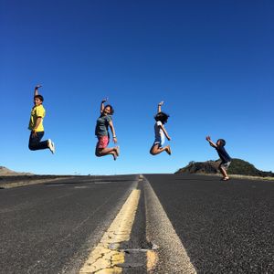 Kona側から広々とした道路をひた走りHILO側へ向かいました。お天気も良く途中の溶岩台地にて写真撮影タイム。溶岩の上に座ったらほんのり暖かく気持ちが良かったです。