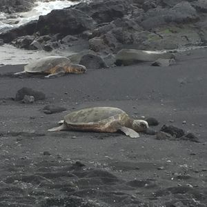お天気があいにく曇り雨でしたが、黒砂海岸ではウミガメちゃんに出会えてラッキーでした!とっても可愛かったです。グルメはマラサダとプナルウベーカリーのパンが特にお気に入りでした。
