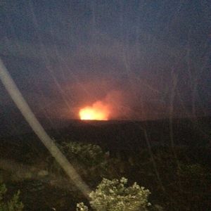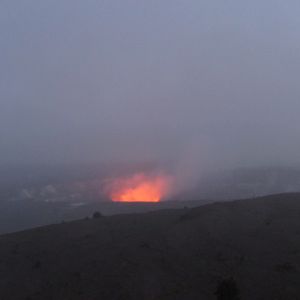 キラウエア火山では小雨が降ってましたが、日没後に真っ赤な火口を見ることができました。