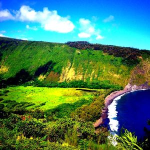 「ワイピオ」とはハワイ語で「曲がりくねる水」という意味で、谷底を流れるワイピオ川に由来しています。切り立った山々や、断崖から流れるいつくもの滝など、ハワイ島でも有数のダイナミックな風景を見ることができます。 また、外部からの侵入を拒むように断崖絶壁に囲まれたこの土地には王族たちが埋葬され、今でもマナ(神聖な力)が宿る聖地とされています。渓谷内は私有地のため許可を得たツアー会社しか入ることはできません。展望台からの眺めだけでなく、ワイピオ渓谷の魅力を堪能したい方にはツアー参加がオススメ。ご予約はこちらから。