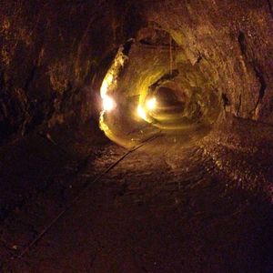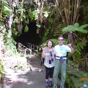 午後からはキラウエア火山です。まず、溶岩の地面の下が流れて出来た洞窟の見学です、アカカの滝と同じ様なジャングルの中を歩いて行きます。洞窟が溶岩で出来たとはとても思えませんでした。溶岩の下の一部だけが流れて洞窟を作るなんて想像も出来ないことです。一見の価値はあります。