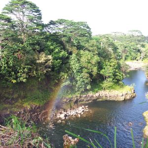 ツアーはハワイ島をバンでぐるりと周り、ハワイ島の大自然に圧倒され、火山岩地帯やジャングルみたいな場所、虹もたくさん見れ、