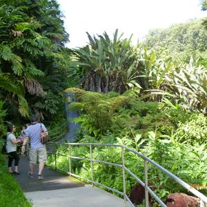 アカカの滝へ行く歩道には、南洋の大きな樹や、原色の花が咲きジャングルを歩いている様で、映画のアバターの中に入りこんでしまったのかと、初めての体験に興奮してしまいました。