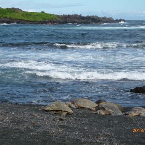 キラウエア火山の展望台は、夜には溶岩の赤色が見えるようですが、今回は昼間で見えませんでした。次回の旅行では夜のツアーで赤く燃えた溶岩を見たいと思います。その代わりと言っては何ですがプナルウ黒砂海岸では、海亀を6匹も見ることが出来ました。まったく動かない亀です。甲羅干しをして寝ているようです。見ていると心が和みます。