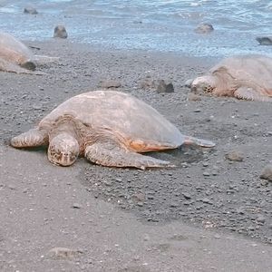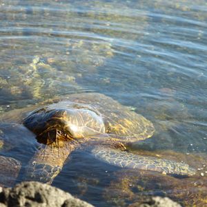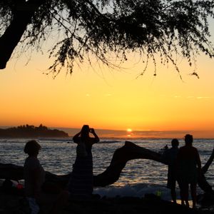 温かいマラサダや美味しいロコモコも食べ、お腹も大満足!海ガメは会えそうもなく諦めかけていましたが、少し離れた場所にユースケさんが走って探してくれて、2頭の海ガメに会うことができました。ツアー終了間際にきれいな夕日にアキさんがバッチリ合わせて下さいました。