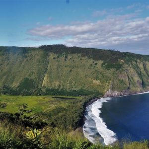 「ワイピオ」とはハワイ語で「曲がりくねる水」という意味で、谷底を流れるワイピオ川に由来しています。切り立った山々や、断崖から流れるいつくもの滝など、ハワイ島でも有数のダイナミックな風景を見ることができます。 また、外部からの侵入を拒むように断崖絶壁に囲まれたこの土地には王族たちが埋葬され、今でもマナ(神聖な力)が宿る聖地とされています。渓谷内は私有地のため許可を得たツアー会社しか入ることはできません。展望台からの眺めだけでなく、ワイピオ渓谷の魅力を堪能したい方にはツアー参加がオススメ。ご予約はこちらから。