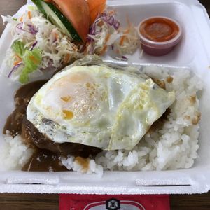 カフェ100のロコモコ、素朴なお店で、ローカル色豊か。