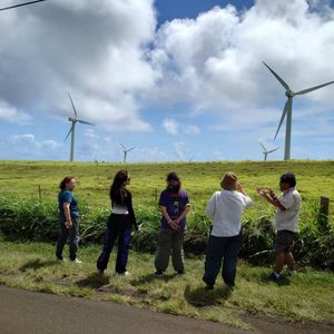 今回では北回りを重点的に回ってもらいました。天気がどうなるかが一番気になるところでしたがオリジナルのカメハメハ像にも挨拶できました。パーカー牧場に行く途中のビューポイントではマウナケアビーチやワイコロアビーチあたりまでが見渡せました。写真はウポルポイントの風力発電設備です。