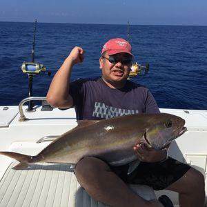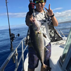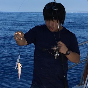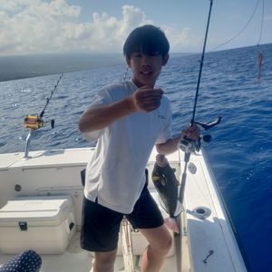 中学生の娘2名と妻の家族で参加しました。対象魚はキャプテンにおまかせでした。当日はジギングでカンパチや底もの狙いで開始です。日本人キャプテンですので話も弾んで和やかムード、釣れないときは次々とポイントを変更してくれます。そのおかげで次々とカンパチをゲットします。おかげで娘たちは大興奮、大喜びでした。そろそろ終盤を迎えたころ、最終でWフッキングしました。娘二人にロッドを渡して20分以上の格闘です。何とか釣り上げてびっくりポン。なんと大物GTがかかっていました。冨士谷キャプテン本当にありがとうございました。ホテルまで迎えに来ていただいた奥様にも、ありがとうございました。ぜひまたお伺いしたいと思います。