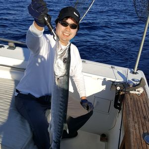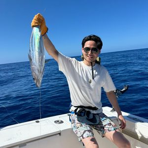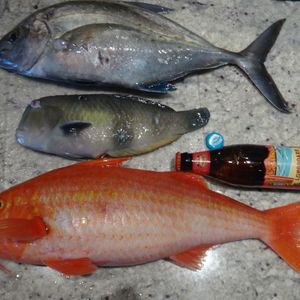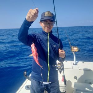 3月13日に冨士谷キャプテンのボートでようやく天気が快復し初心者の私達は釣果に期待しつつも風が強く波が高く釣りの腕も腕なので私は大ヘラヤガラを釣ることができました。主人はカスミアジを釣り上げましたが毒があるそうでリリースし最後になんとサメを釣り冨士谷キャプテンの凄いテクニックで凄い美しいサメの姿を見せて頂きました!ホントキレイでした!キャプテンありがとうございました‼︎ヘラヤガラの味ですが冨士谷さん超旨しでしたよ!刺し身は上品な味でホテルの包丁がイマイチで短冊になりましたが。バター焼きは絶品でしたよ‼︎!次回食して見てください!また是非お世話になりたいのでよろしくお願いします!‼︎