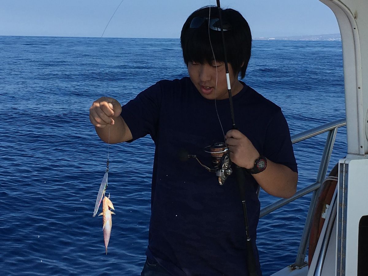 次男はカンパチとカツオと格闘しながらいずれもバラシてしまい、何とか1匹でも釣り