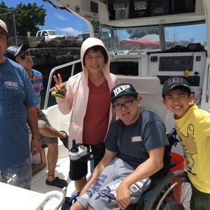 みんなでおいちゃんと車いすを船に積み込んで出発です。初心者ばかりでしたが日本人のベテランキャプテンのご指導のおかげでミナト君3匹、おかあさん3匹、おとうさん途中でフィッシュイーターに美味しいところを食べられた頭だけのさかな1匹の釣果があり非常に楽しく過ごせました。