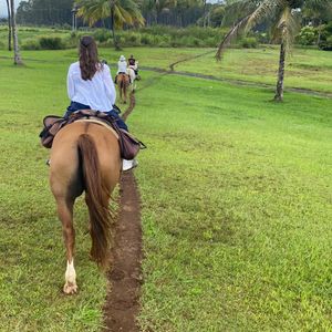 オアフ島で数回の乗馬経験ありますが、歩くだけのツアーでした。こちらの乗馬は安全な広い場所では 少し走らせたりできました。怖ければ歩くだけでもOK。楽しめます。他のツアーでは3Hコース等がありましたが、お尻が痛くなってしまうので、こちらの1.5H程度がベストタイムと思います。
