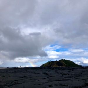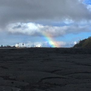 2/10、冬の嵐でマウナケアの天文台観測員も下山する悪天候。オニヅカセンターも終日氷点下で通行止めという日に当たってしまいましたが、「雲の穴を見つけて追いかけます。こうなったら超レアなウィンターストームのハワイを見て回りましょう」とガイドのJinさん。たびたび自動洗車機みたいな土砂降りに見舞われながらも、壮大なマウナケア山麓、幻想的な噴石丘たちを見渡す高台で次々と形を変えて流れる雨雲や、遠くから押し寄せる巨大な雷雲・稲光を見たり、うねる溶岩の上に現れた虹、名前通り白く雪化粧したマウナケアに加えて、普段は雪が降らないマウナロアがうっすら白く雪をまとっている姿などを目にすることができました。