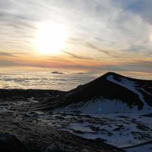 マウナケア山の頂上へ行きました。雲海がゆらゆら浮かんでいて、そこに太陽が赤くなりながら沈んでいきました。