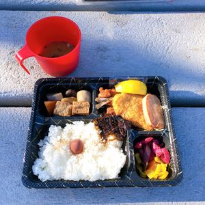 鬼塚ステーションでの軽食?夕食?は幕の内お弁当出ました。