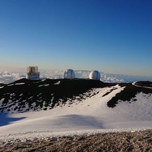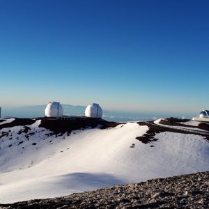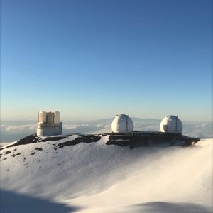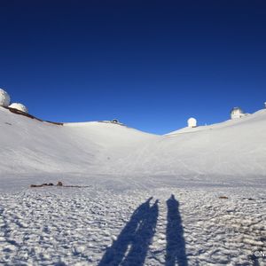 日本のすばるを含め各国の天文台よりも先に目に入ってきたのは一面の雪景色。午前中は暑いビーチにいたのが嘘のような銀世界でした。