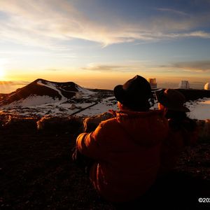 私たちが参加する4、5日前にマウナケア山は悪天候で積雪と道路の凍結、その結果山頂までの道路は途中から通行禁止になってしまい前日も通行禁止でした。当日は山頂まで行けるのか不安でしたが、驚くほど見事に晴れて山頂でのサンセットを堪能できました。星空も想像以上に素晴らしく、トモさんとイチカワさんという明るく楽しいガイドさんのおかげで完璧なツアーを楽しませていただきました。本当にラッキーでした。参加者が一人も高山病にならないよう終始気を遣いながらも、雄大で美しいマウナケアの姿とサンセットに共に感動していたガイドさんに心から感謝しています。