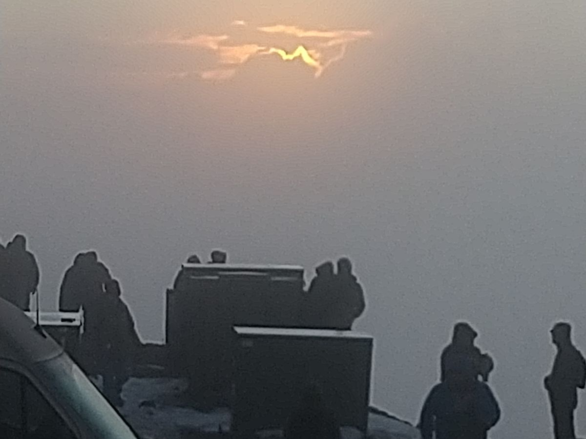 身体を慣らしてから、山頂でのサンセット見学。見渡す限りの雲海が白からオレンジ色に染まって行き、太陽は沈んでいきました。