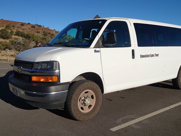 午後にコナで集合し、ツアーガイドのバンで移動。