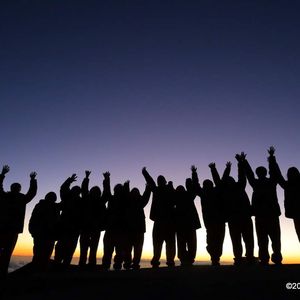 山頂まではガタガタ道。まずは夕日を待ちます。ここでは沈みゆく太陽を使った面白い写真(カメハメ波や、お決まりの手に太陽を乗せている風のポーズ)をガイドさんがたくさん撮って下さいました。夕日が沈んでからはお待ちかねの星空。レーザーポイントを使いながら星について詳しく教えてくれます。星をバックにグループごとに写真も撮ってもらえました。