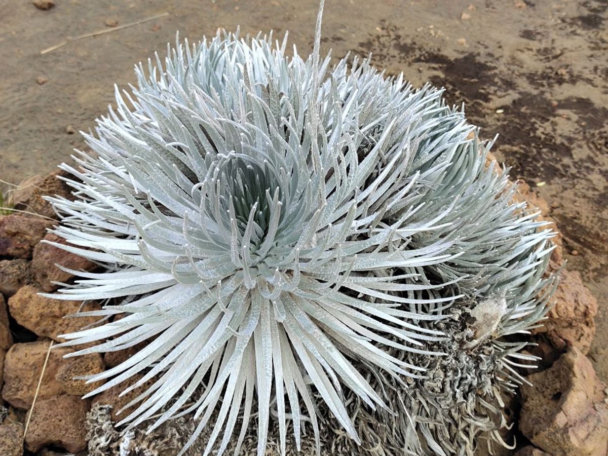 ハワイ島に来た夢が果たせずがっかりでしたが、スタッフに教えてもらって、ビジターセンターの近くにある「シルバーソード(銀剣草)」を見ることができて、それは嬉しかったです。