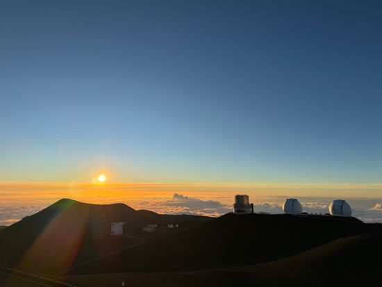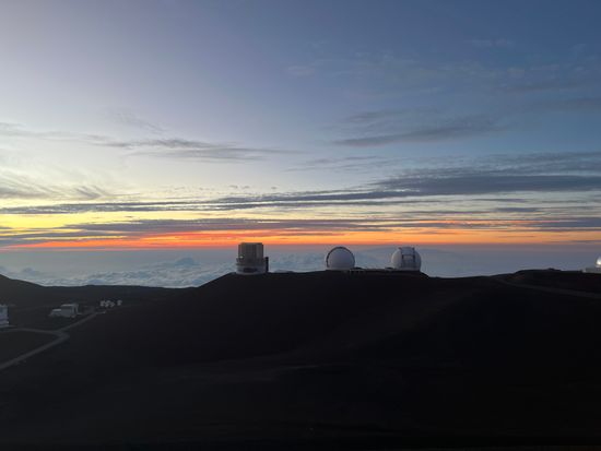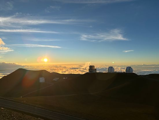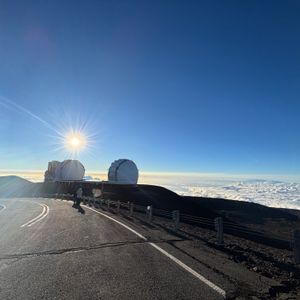 カイルアコナから出発して、しばらく行くと、大雨。サドルロードに入ってもあまり良い天気ではありませんでした。大丈夫かなと、思いながら着いたビジターセンターは曇りで、山頂は見えませんでした。「頂上の天気は違います」と言う、ガイドの翔洋さんの言葉を信じて、頂上へ向かいました。ある所(3000m位かな?)から、雲が切れて、快晴でした。パロマ天文台群を丁寧に説明して回ってくれました。そして、お待ちかねのサンセットです。風が強くて少し寒かったですが、最高の夕陽が見れました。日が暮れた後は、少し降りた所で、星空鑑賞でした。天の川もバッチリ見えました。土星🪐を天体望遠鏡で見れたのは良かったです。星座の説明は、日本語だったので、良くわかりました。本当に、楽しい体験、ありがとうございました。