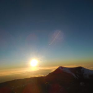 なんとか、山頂につきました。『ここ、地球?』『ここハワイ?』言葉にならないです。Mちゃんがガイドさんに転職したのは、このツアーに参加したから。『人生かわりました』とのこと。雲海に沈みゆく夕陽を家内と見ながら、泣いてました。なんか、悩んでることなんか、このサンセットおみると、小さく、どうでもよいことののうに思えてきました。(日本に帰りしばらくするとまた、小さいことに悩む日々ですが)そのあと、下に移動して星空観賞。最初は、あまり星がなく、『まあ、こんなもんか』と思っていたら、徐々に星がでてきて、気が付けば、お星さまを振りまいた空を見、また涙。サンセットも最高だったけど、星空も心揺さぶる。レーザーポインターを使いながら、丁寧に星座の説明をしてくれる。途中で暖かい紅茶とビスケットも美味しかった。最後に、バスを降た後、Mちゃんが猛ダッシュ、で『サングラス!』と忘れ物と届けてくれた。ちゃんと忘れ物の確認してることに、ここでも感動。どれだけ、感動したんだろう。他の参加者の方も、マナーが良く、とても快適でした。今度は、マサシでマウナケアに行きたいですね。