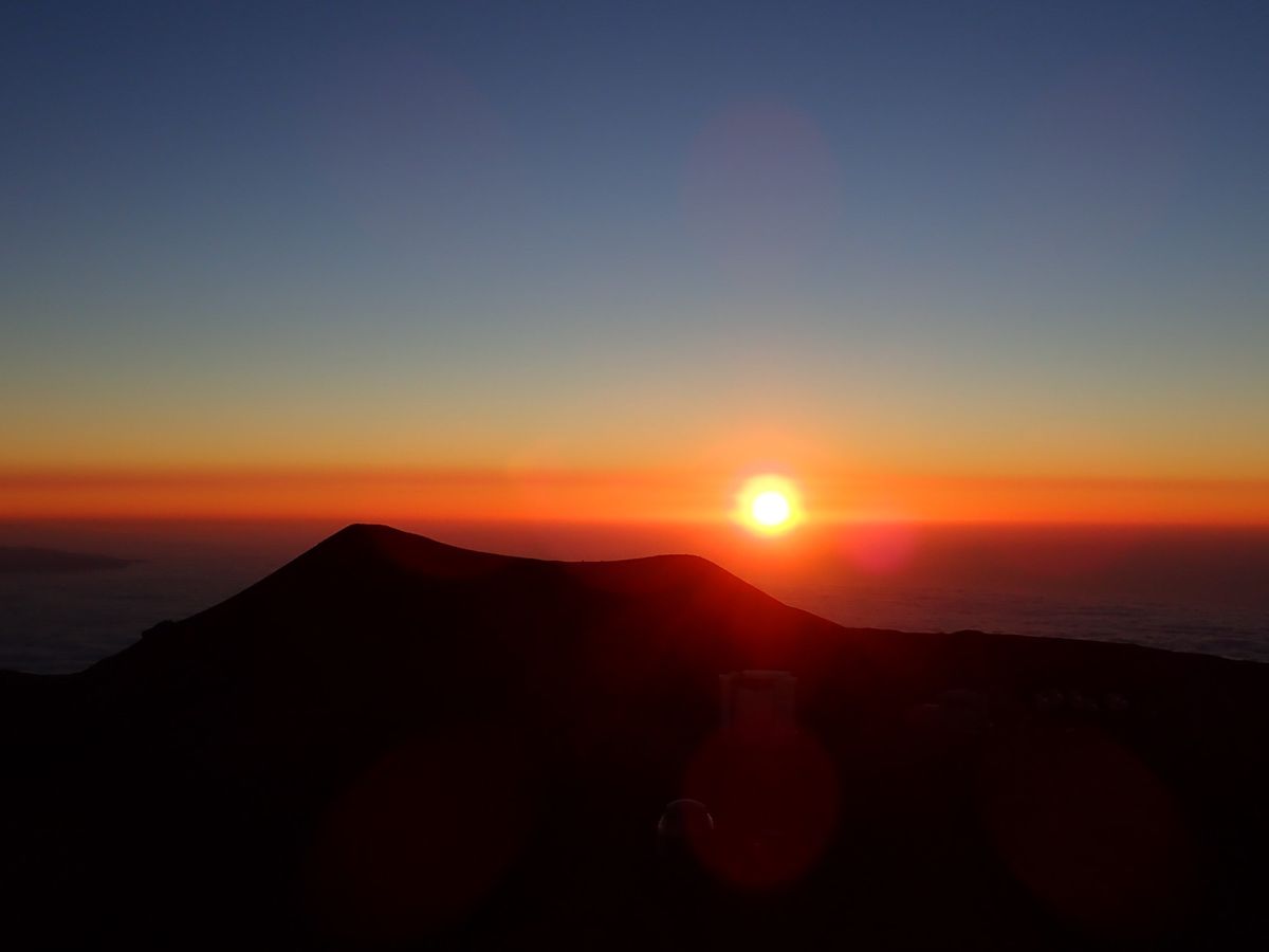 道中曇り空だった為、頂上の状態が心配でしたが、到着した時間には快晴となり天文台ははっきり見え、日没の瞬間も素晴らしかったです。