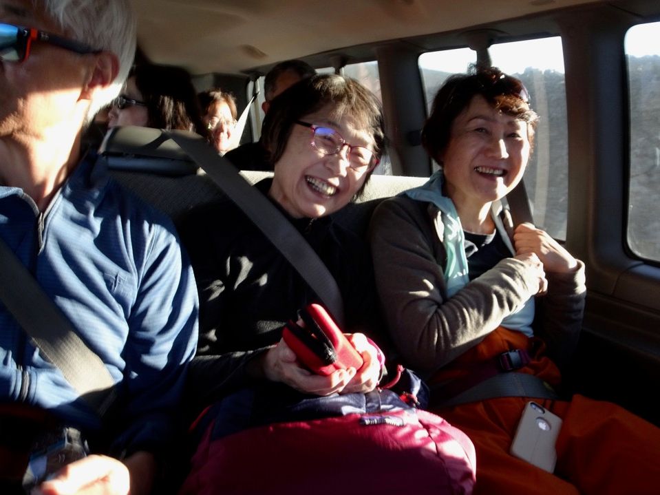 ピックアップの車内に乗り込んだ時から、日本人ガイドさんは、とにかくしゃべりっぱなし、疲れちゃうんじゃないかと思うほど。参加者は全員日本人だったので、車内は常に笑い声に包まれました。天候にも恵まれ、素晴らしいサンセットを楽しめました。ガイドさんが撮影する画像には、天ノ川がきれいに映り込んでおり、参加者全員が声を上げて驚いていました。高山病症状が疑われて、ちょっと苦しかったけど、サンセットや星空がそれを帳消しにしてくれました。