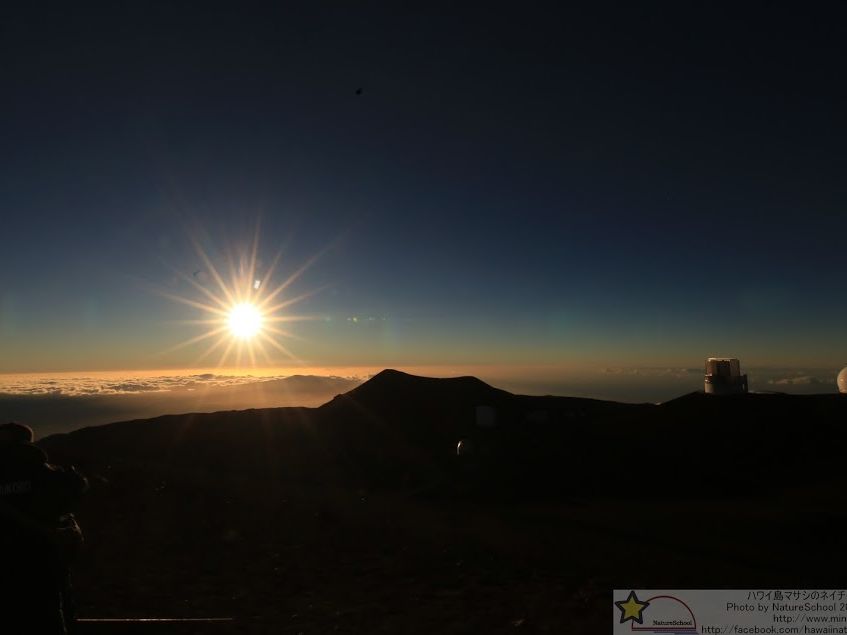 今回友人夫婦とシニア4人で参加しました。 1年半前のハワイ島(12月)では現地で申し込みするも、前日の大雨で中止になり参加できませんでした。 その代わり積雪のある白いマウナケア(まさに白い山)を拝めましたが... 今回は事前に余裕をみて、ハワイ島到着日の翌日に予約を入れました。ところが当日わざわざバスで宿泊地まで来ていただき「強風のため山頂は閉鎖」と伝えられたことから、その場でスケジュール確認し、2日後の4月3日に予約を変更することができました。 予約当日ガイドのシンさんがお迎えにきて、今回はケアウホウ地区のみでバスが一杯(11人)になったため時間に余裕がありました。 登る途中では雲の中で雨も少し降りましたが、2000mのマウナケアパーク、2800mのビジターセンター、4200mの山頂でも天候ばっちりで素晴らしいサンセットが見られました。 2800mのビジターセンターのベンチで食べるお弁当も、シンさんが言うほど(??)でもなく、お味噌汁は確かにおいしく、同行したバスのガイド松崎さんのハイテンションも楽しかったです。 ビジターセンターからしばらくオフロードがあり、バスの後部座席は跳ねてはねてギャハギャハと盛り上がっていました。 山頂付近に登りスバル天文台が見えると超テンションがあがります。 山頂では日没後は30分以内に降りなければならないようで、星を見られる3800mの駐車スペースまで下ります。 そこで見た星空は感動としか言いようがないものでした。 最初は太陽の光が残っていますが、徐々に暗くなり見える星も増えてきます。 流れ星も4回見ることができました。 シンさんの星座の説明素晴らしかったです。 望遠鏡でオリオンの大星雲を見せてもらいました。 それから星空をバックに記念撮影もしてもらい、後でその他の写真と一緒にダウンロードできます。 行きは3800mあたりから空気の薄さを感じ、山頂で靴下をはこうと頭を下げたらクラッときましたが、自力での登山中のようにあきらかな酸素不足を感じることも、高山病の症状も無く無事戻ってこられました。 最高の機会に恵まれ、楽〜に4200mまで登り、満天(まさに!)の星空を見られるツアー、また参加したいです。 天候次第ですが、おすすめです。 是非チャレンジしてください。