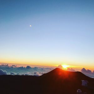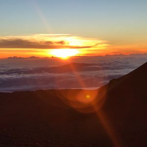 マウナケア山頂からの夕日は、雲海に沈むオレンジ色の太陽がとても早く感じられました。