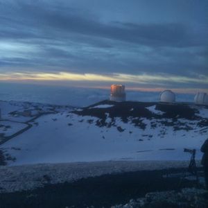 オニヅカセンターから上のマウナケア山頂にはなんとな登れましたが雪がつもり雹がふり、極寒でサンセットは見れず。