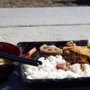 日曜日限定でしたが夕飯のお弁当も美味しく、ガイドさんが持参してくださったお味噌汁も最高。適宜準備される温かい飲み物に、防寒着。