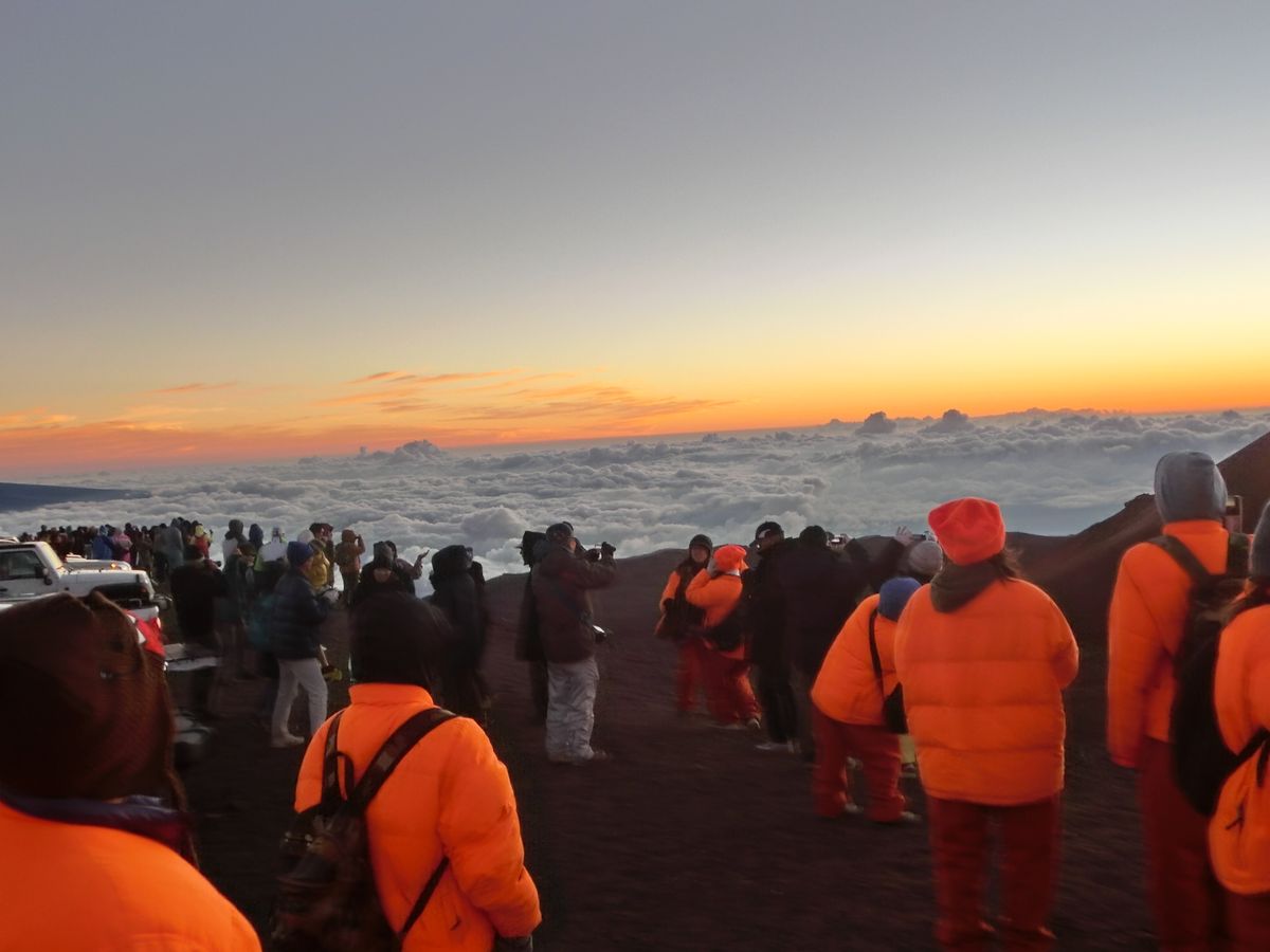 その後、マウナケア山頂に向かって出発します。少し早めに着いて、絶好のびゅうポイントをゲット。あとはひたすら太陽が沈むのを待つばかり。雲海がうまい具合にでて、最高のサンセットを見ることができました。
