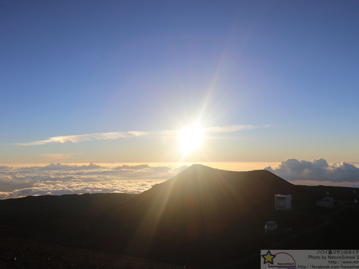 朝日が素晴らしいと聞いておりましたが、時間の問題で夕陽にしましたが、こちらもなかなか幻想的で良かったです。マウナケアの山頂は少々息が切れる高度ですので、中学生位まではきついかも。