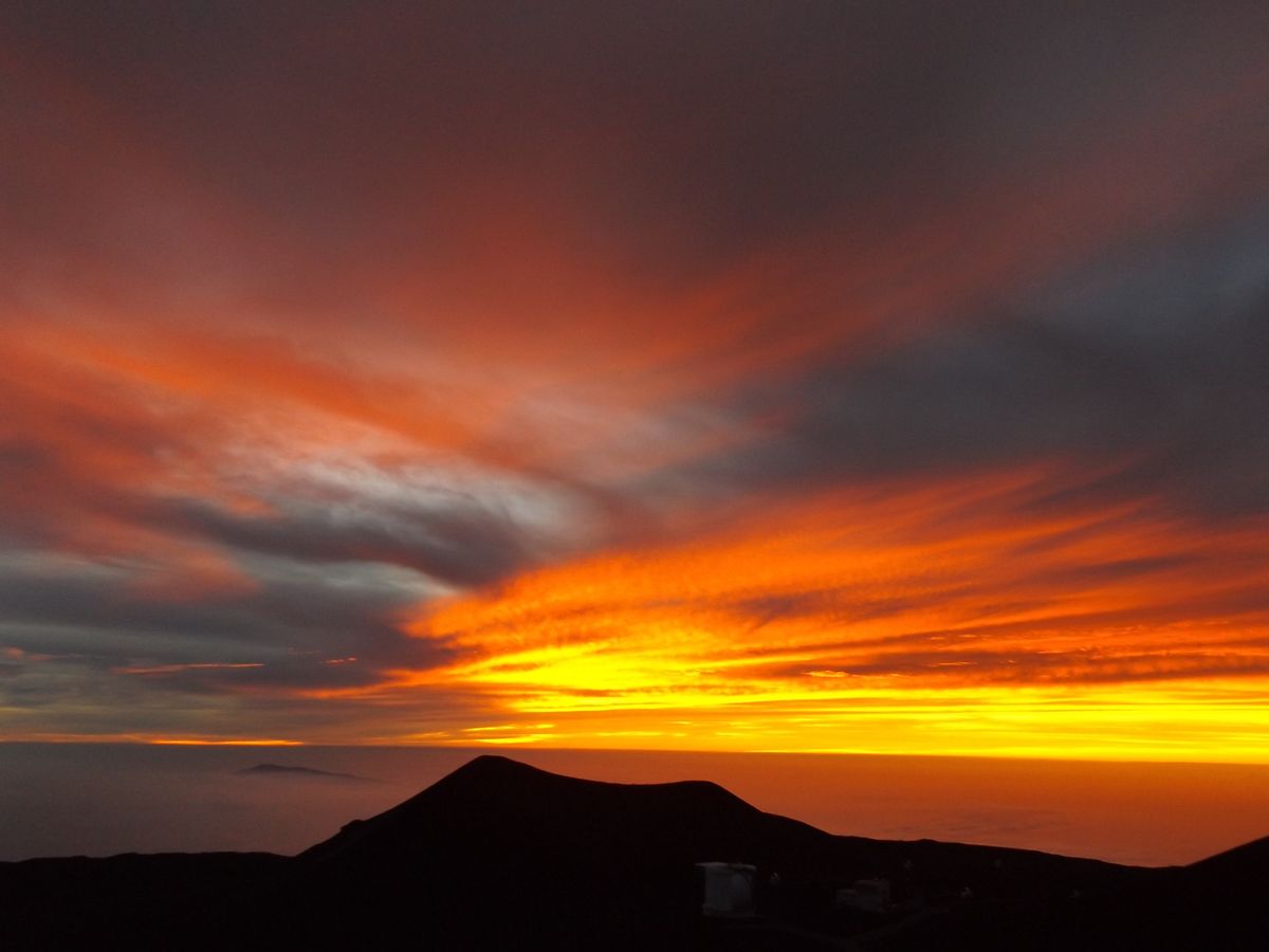 日程が動かせないこともあり、満月の翌日、また7月は日も長いこともあり、期待した星空は残念ながら見ることができませんでした。でも頂上から見るサンセットにはとても感動。キラウェア火山のマグマが雲海をオレンジに染めているのにも驚きました。