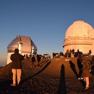 山頂で夕日に照らされる天文台や雲海は圧巻!