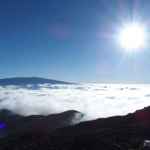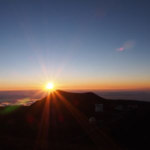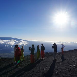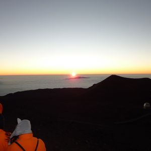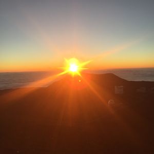 マウナケア山頂でのサンセットは、今まで見てきたサンセットの中で一番美しく感動的でした。また雲が下の方にしかなく、一面に広がる空の色が徐々に変わっていく様子がとても印象的でした。
