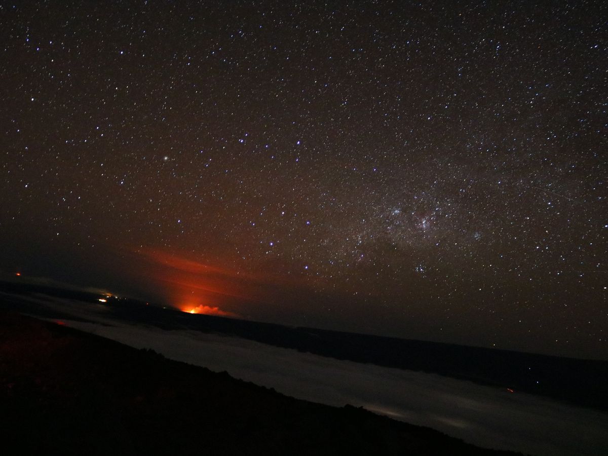 星の光の下で雲海の一部がオレンジ色に見えたキラウエア火山の溶岩の明かりも幻想的でした。