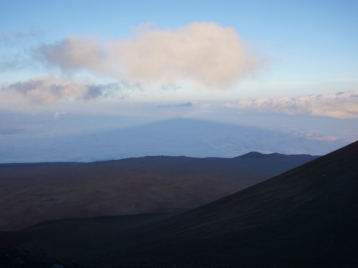 マウナケア山頂でのサンセットに感動!サンセット前に見た雲海に映すマウナケア山の影。そして、雲海に沈む太陽。ざわついた廻りが一瞬静かになり、サンセット。頂上にいた世界中の人たちから拍手!頂上ならではの光景にただただ感動して言葉が出ません。こんな素晴らしい光景を言葉で表現できる人がいるでしょうか?いいえ、いません。そして、飾り立てた言葉の表現なんていりません。私の心が知っているから…。(その後のスターゲイジングも素晴らしく、星空をよく説明してくれました。ガイドさんは終始親切丁寧で、こまめに私のカメラで写真を撮ってくれました。希望者にはガイドさんが撮った写真を、ホームページからダウンロードできるパスワードが送られ、無料でたくさんの写真が入手できました。別のオプショナルツアーではダウンロードに20$もかかるのがありますので、良心的で最高のツアーでした。ガイドさん、マサシネイチャースクールさん、ありがとうございました。Mahalo!)