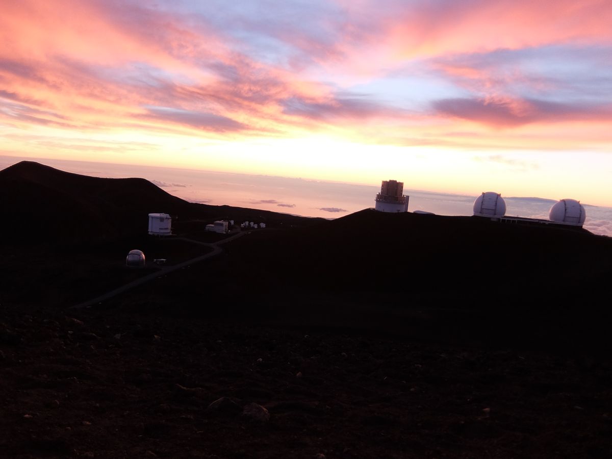 ゆっくり高地に慣れてから、すばる望遠鏡の前で記念撮影。サンセットはとても美しく…でもあっという間でした。