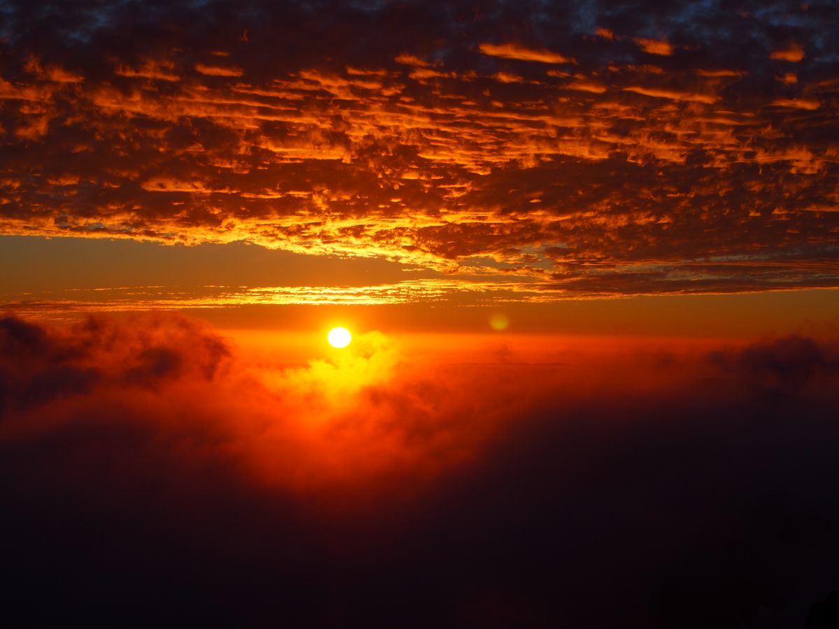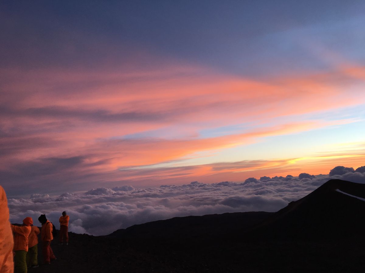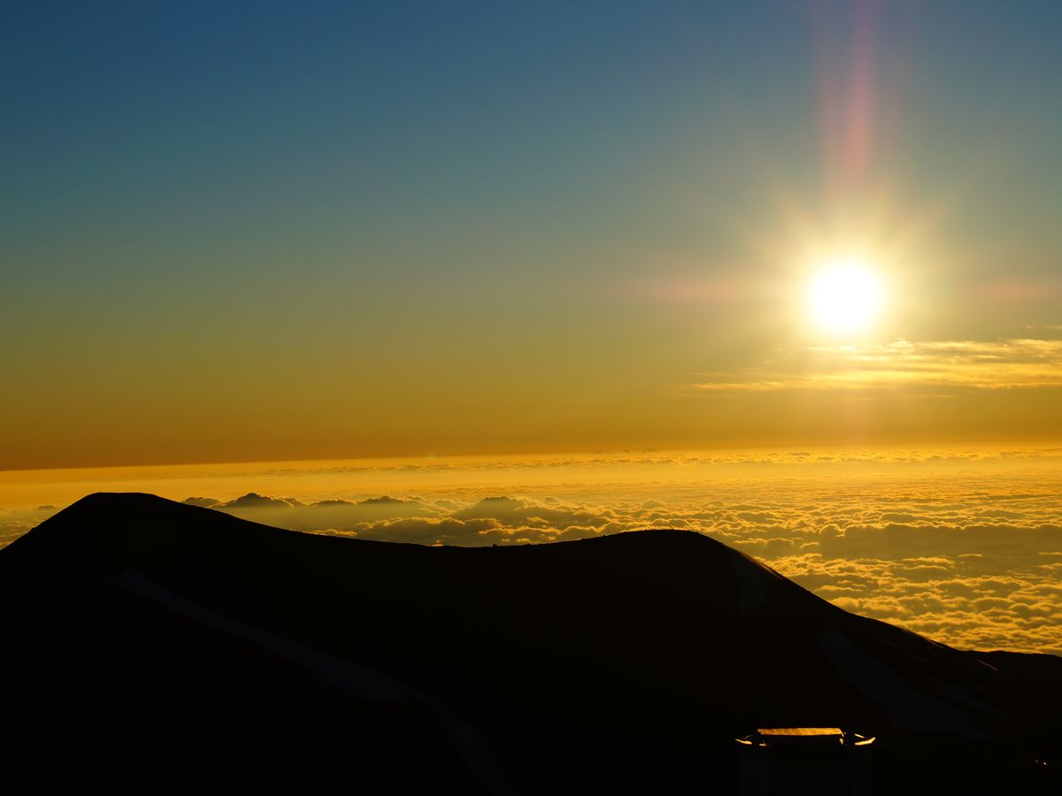 富士山より高い4000メートル級のマウナケア山山頂に自動車で行くことができるのは、登山未経験者には本当に楽で助かります。山麓は曇っていましたが、山頂付近は雲海となって、そこへ沈んでいく夕日と刻々と色を変える空は最高に美しかったです。