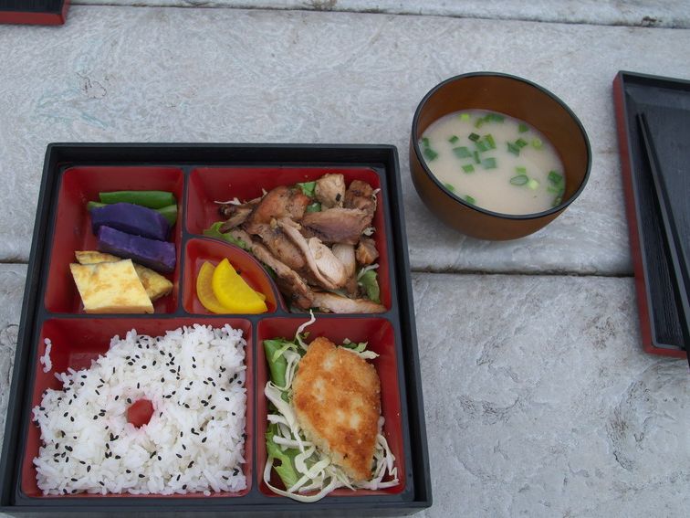 オニヅカセンターでは美味しい和食弁当+お味噌汁をいただいて、