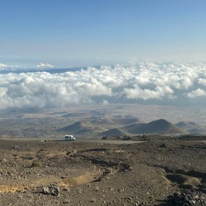 マウナケア山頂までは車で登りますが想像よりも早く着きます。高山病までいかなくとも多くの人にふらつきや眠気、全身倦怠感が出ることに注意。また頂上は寒いので、貸してくれるスキーウェアを着た方がいいです。