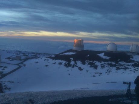 オニヅカセンターから上のマウナケア山頂にはなんとな登れましたが雪がつもり雹がふり、極寒でサンセットは見れず。